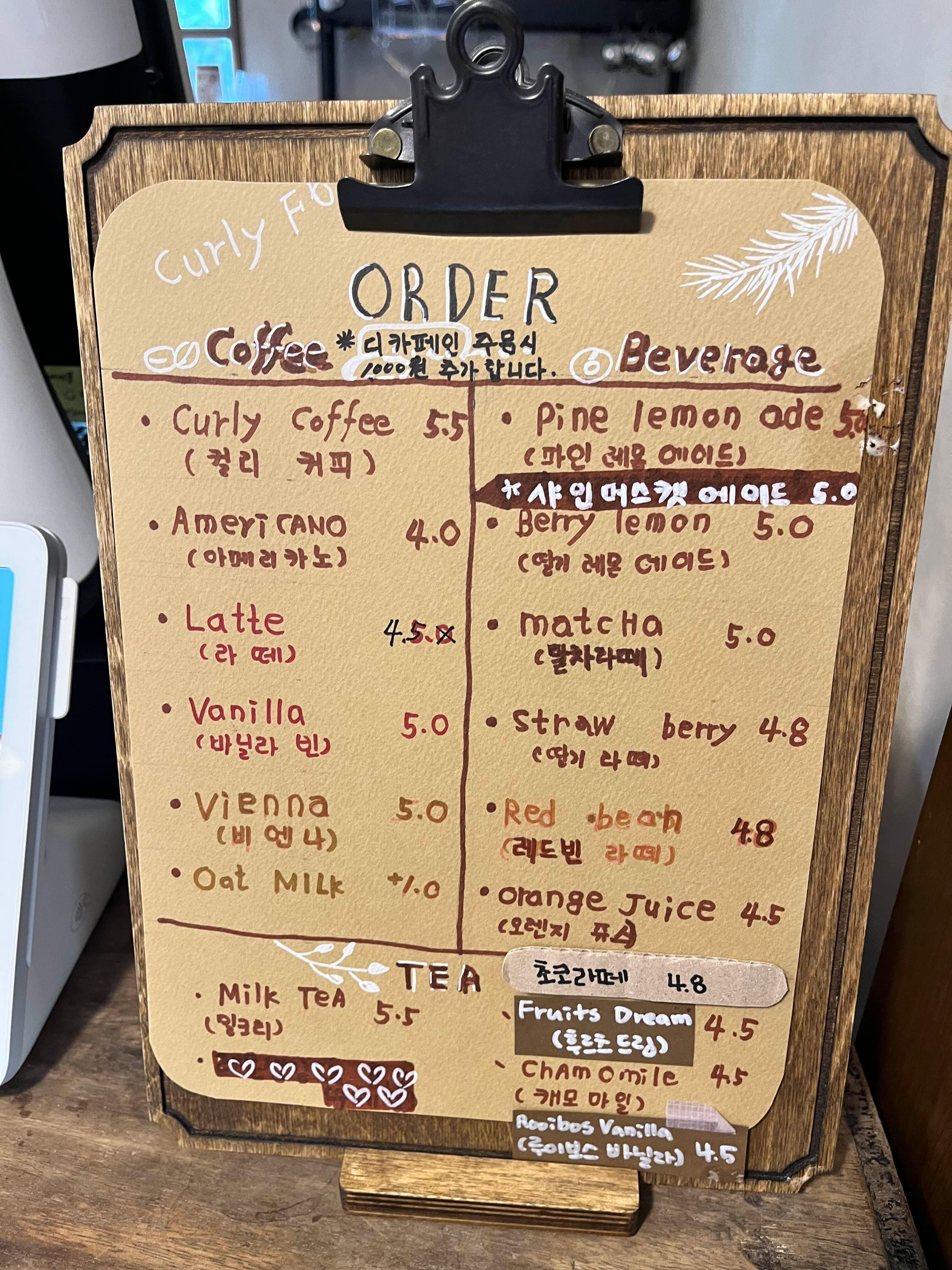 아메리카노, 파인 레몬 에이드 등 및
